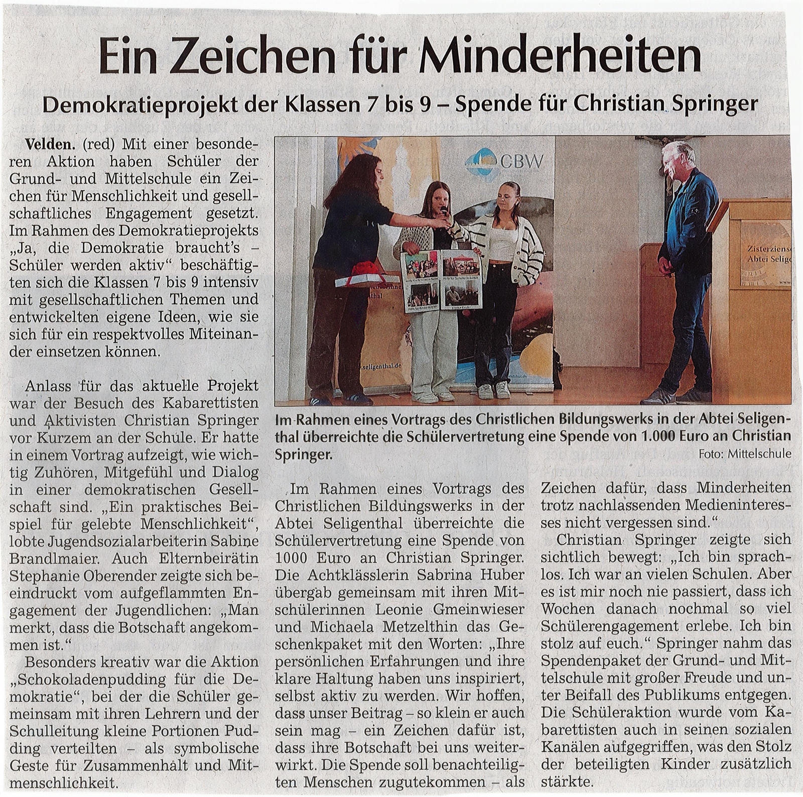 Velden: Schüler setzen starkes Zeichen für Minderheiten